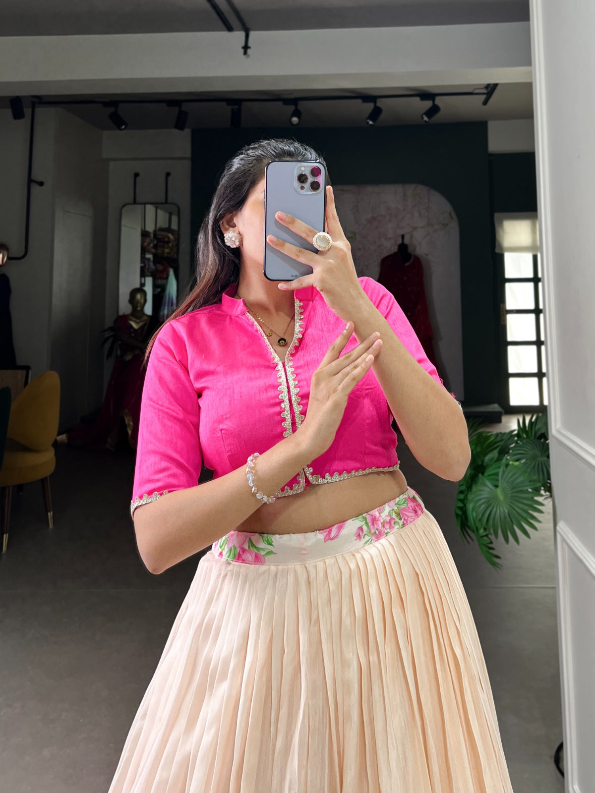 Floral Cotton Silk Lehenga Choli with Zari Border & Stitched Blouse – NNK1130BPI