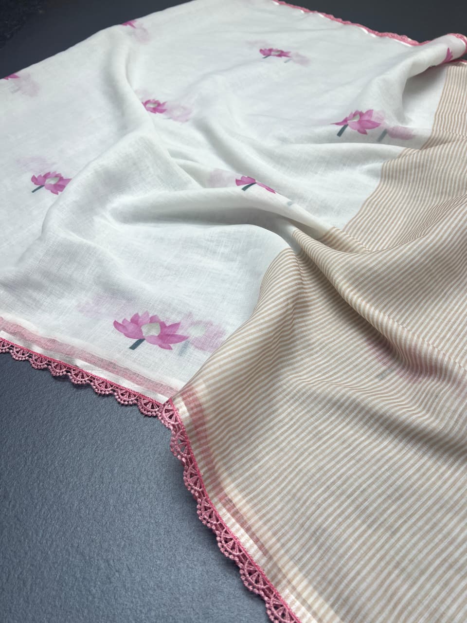 MG589 – Mangalya Linen Saree with Fancy Lace Border