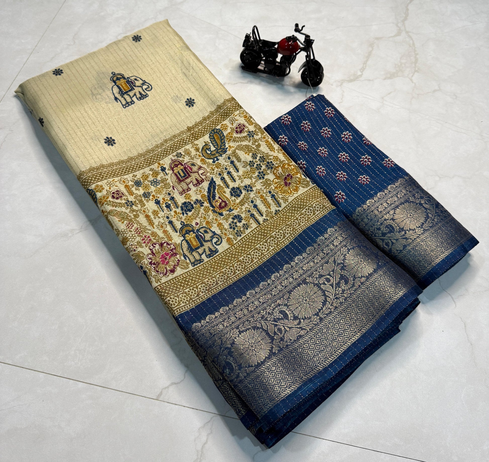 Grace your wardrobe with this beautiful Rekko Silk Saree, featuring all-over floral prints, a stunning contrast woven border, and a rich woven pallu. Perfect for casual wear, small functions, and gifting.