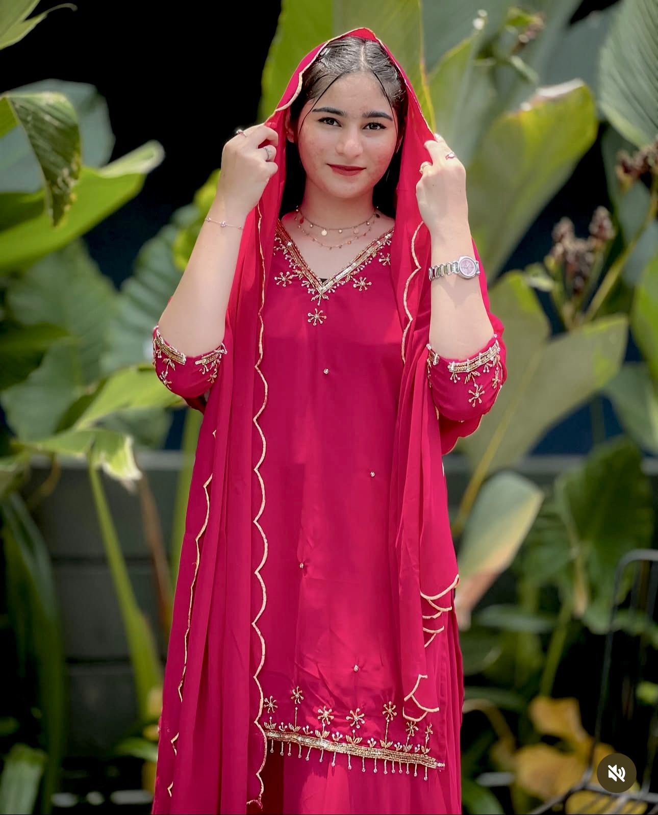 WW-1204 – Fox Georgette Top-Sarara-Dupatta Set - Pink